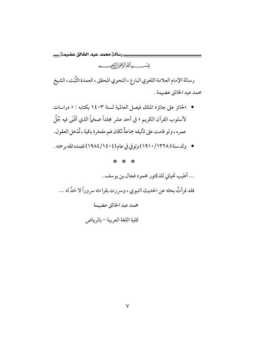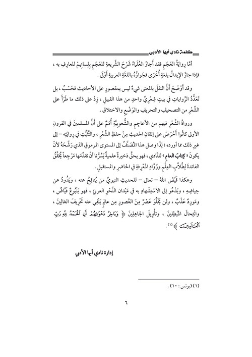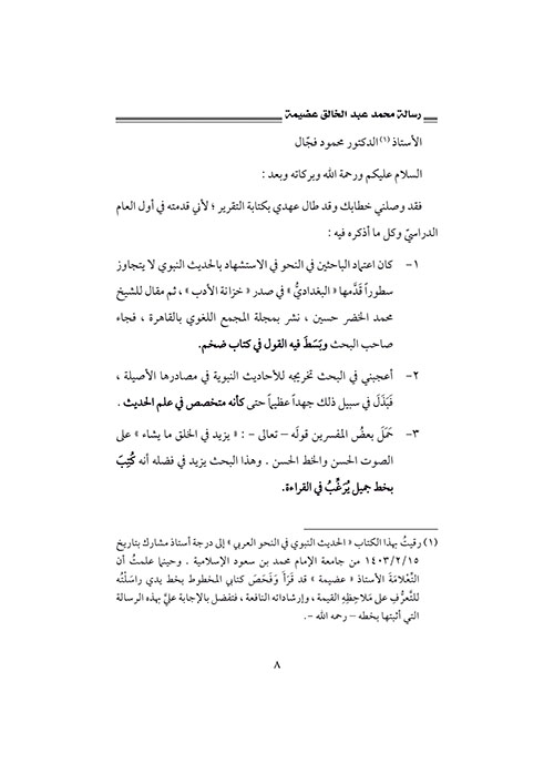 نبذة الناشر:يتناول الكتاب ظاهرةَ «الاحتجاج بالحديث النبوي والاستشهاد به»، فالحديثُ النبوي كما أنه المصدر الثاني للتشريع واللغة بلا منازع، والنبي (ص) أفصحُ العرب قولاً، وأبينُهم كلاماً، وأعلاهم بلاغة. وقد بذلَ المؤلف جُهْداً كبيراً في هذه القضِيَّةٍ التي شغلَتِ الباحِثينَ، وكثُرَ فيها الضَّجيجُ واشْتَهَرَ فيها القِيلُ والقالُ. ولم يخرج عن إطار البحث ...النحوي الجاد، الذي فيه أُوَفِّي الموضوعَ حقَّه من البحث والتنقيب. وخَلَصْنَا من دراسته هذه إلى أنه من المسلّمات الأولية أنَّ الخطأ واللحن لم يقُلْه النبيُّ (ص) ولا أصحابُه ولا التابعون. إقرأ المزيد