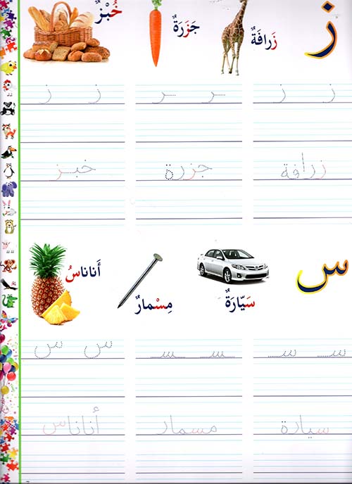 - تزويد كلّ حرفٍ بكلمةٍ وصورتها ممّا يساعد الطفل على الربط بين الكلمة والصورة، وتكوين مخزون لغويّ بسيط في ذاكرته.