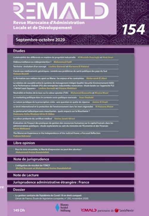 نبذة الناشر:صدر العدد 154 من السلسلة العادية للمجلة المغربية للإدارة المحلية والتنمية الخاص بـ”شتنبر- أكتوبر 2020،” ويحتوي على 29 مقالا باللغة العربية، و16 مقالا باللغة الفرنسية، ومقال واحد باللغة الإنجليزية.