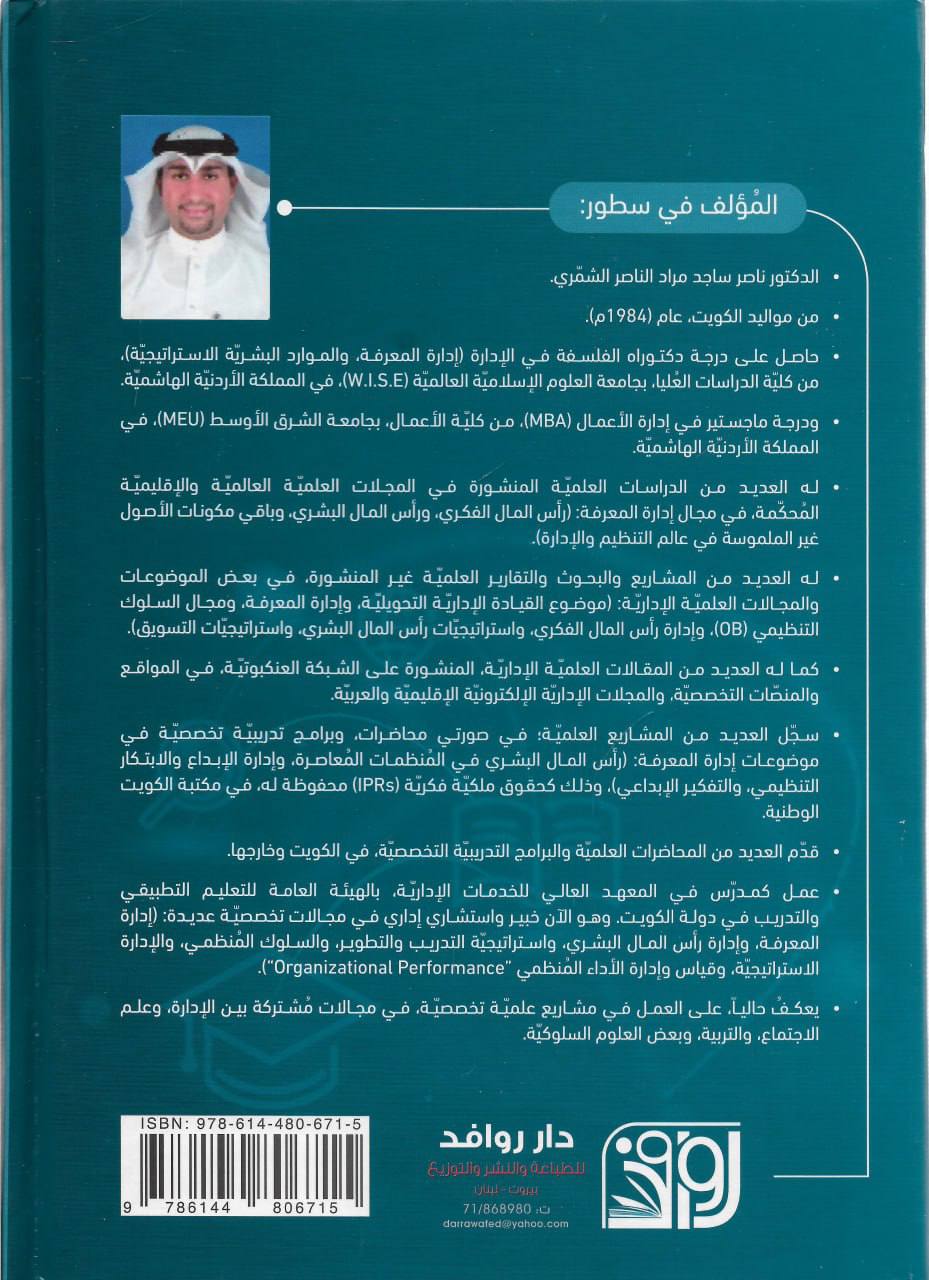 بَحثَ فيه المُؤلف بعض الموضوعات والقضايا المُتصلة بالمعرفة مِن المنظور العلمي التنظيمي والإداري، وقد قُسم الكتاب إلى محورين جوهريين؛ هما: (1) المحور النظري المعرفي، (2) والمحور العملي التطبيقي.