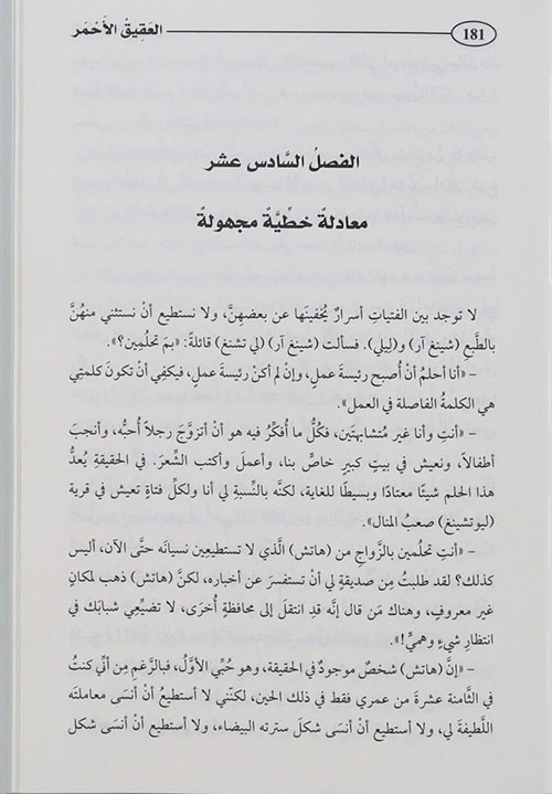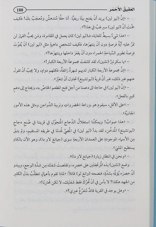 نبذة الناشر:"العقيق الأحمر" روايةٌ صينيّةٌ للكاتب (تيانغ زي هان فو)، تُسلِّط الضّوء على المشاكل الّتي يُعاني منها المجتمع الرّيفيّ الصِّينيّ، بالإضافة إلى "نموّ الشّباب من خلال العمل على التّخفيف من حدّة مشكلة الفقر، وإحداث التَّغيير داخل نفوس النّاس". تدور أحداثها في قريةٍ صغيرةٍ تُدعى "ليوتشينغ"، يُعاني أهلها من الفقر الشَّديد وصعوبة ...الأحوال المعيشيّة، فتنتدب الحكومة ثلاثة مسؤولين للتَّخفيف من حدّة هذه المشكلة. وقد ركَّزت الرّواية على ابتكار طرق لحلّ النّزاعات أثناء عمليّة التَّخفيف من وطأة الفقر، بالإضافة إلى تغيير أفكار القرويّين، حيث إنّ تحوّل الأفكار وتغيُّر طرق التّفكير داخل المجتمعات الفقيرة هو جوهر روايتنا هذه، دون أن ننسى قيمًا ومعاني هادفةً أخرى، مفادها أنّه من المهمّ للفقراء الوثوق في قدرتهم على انتشال أنفسهم من براثن الفقر، الأمر الّذي يُعزّز دور الأدب في مساعدة النّاس على حلّ مشاكلهم وتحسين أحوالهم وتعريفهم قيمة العمل وضرورة مواجهة العقبات المختلفة الّتي تعترض طريقهم. إقرأ المزيد