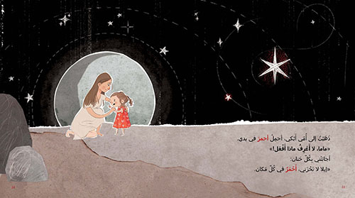 تحزن إيلا وتشعر بالخوف من فقدان أحمر لكنها تدرك بمساعدة ماما أن أحمر سيظل موجودا معها، لأنه ترك أثرا جميلا في كل مكان خاصة في قلبها الصغير النابض بالمحبة والمشاعر لكلّ شيء جميل حولها.