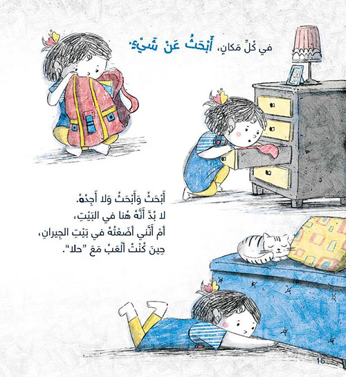 نبذة الناشر:في كل مكان أبحث عن شيء، أبحث وأبحث لكنني لا أجده مع أنه معي طوال الوقت. قصة مليئة بالفكاهة والمغامرة والحركة، تساعد الطفل على الانتباه والمتابعة.