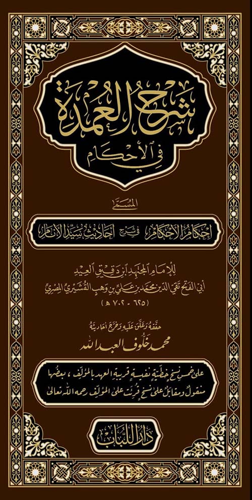 نبذة الناشر:شروح العمدة كثيرة، لكن من أنفسها وأجودها لطالب العلم المتأهل شرح ابن دقيق العيد الذي بين أيدينا. من معالم هذا الشرح أنه يبدأ بذكر الحديث.ويمشي فيه على ترتيب المؤلّف. ثم يبدأ بترجمة الصحابي راوي الحديث، فيعرّف به وبأصله ويضبط اسمه بالحروف. ثم يبدأ بشرح الحديث مقسماً شرحه إلى مسائل مرتباً ...اياها بالأرقام. إقرأ المزيد