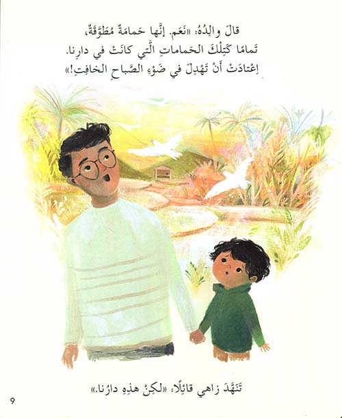 نبذة الناشر:انتقل زاهي وعائلته مؤخرا إلى بلد جديد. يحن والده الى حياته السابقة، حيث كانت الحمامات المطوقة تهدل في ضوء الصباح الخافت وطيور السنونو تطير أسرابا في السماء عند الغروب. وجد زاهي خطة ليساعد والده على إيجاد السعادة في داره الجديدة. قصة معبرة عن الانتماء لمؤلفة القصة المميزة "لبنى وحصاة".