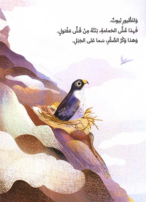 نبذة الناشر:كتاب شاعريّ دافئ يعرّف الأطفال على أنواع وأسماء البيوت للحيوانات والإنسان، من خلال رسومات خلّابة تغذّي مخيّلة الأطفال، ويرافق تلك الرّسومات نصّ إيقاعيّ مبسّط يعزّز حصيلة الطّفل اللّغويّة ويبقى عالقا في الأذهان، ممّا يجعل الطّفل يستشعر قيمة ومعنى البيت الذي يؤويه.