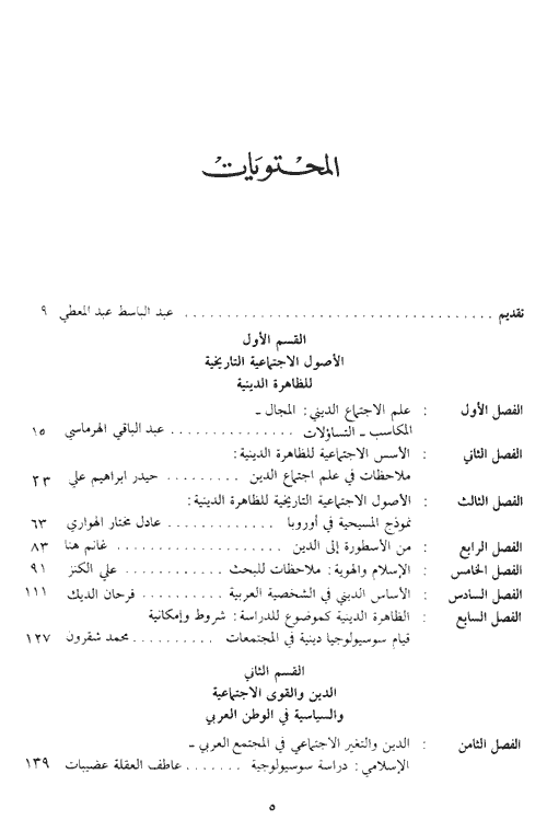 وكان من الطبيعي لإتمام التتبع، الوقوف على الحاضر لاستطلاع الوعي والممارسات والظواهر الدينية البارزة في الشارع العربي، مثل وضعية "التدين" في الحياة اليومية للمواطن العربي، والحركات الدينية المعاصرة، وبعض ما سمي في الشارع العربي "تطرفاً". ثم كان القسم الأخير في الندوة الذي قصد به تقديم إطلالة على مستقبل دور الدين في حركة المجتمع العربي، وهو مساهم في استشراف وضعية الدين وأدواره في تعبئة المجتمع العربي، نحو مراميه المنشودة، في الوحدة والإبداع والتحرر والاعتماد الجماعي على الذات. وقد تمّ حصاد أعمال هذه الندوة "الدين في المجتمع العربي" بين طيات هذا الكتاب على أمل الاستفادة منه في أعمال تالية للجمعية العربية لعلم الاجتماع هذا من ناحية، ومن ناحية أخرى الاستفادة من هذا الحصاد على نطاق بحثي ودراسي أعم، يطال الفرد والهيئات العاملين في هذا الحقل. إقرأ المزيد