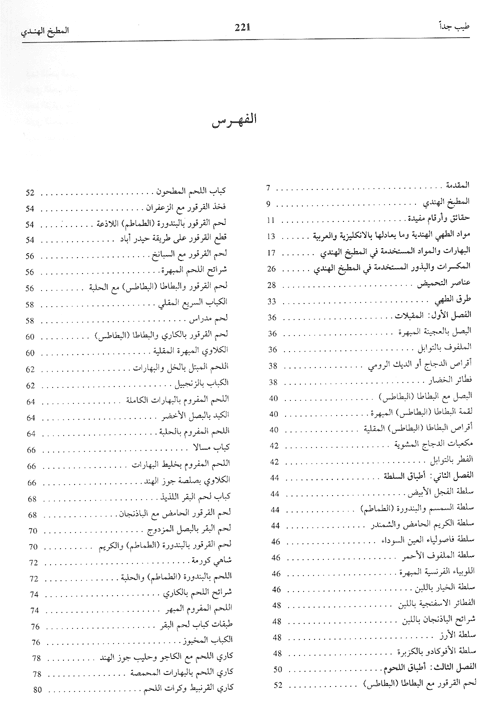 وكتاب "المطبخ الهندي" يضمّ توليفة متنوعة من الأطباق الهندية ...الشهية فطبق عدس حيدر آباد، والحمّص بالكاري وفطائر طحين العدس المقلية وأرز بهارات يارم ومسلا... أطباق هندية لذيذة الطعم ومتنوعة المحتويات. إقرأ المزيد