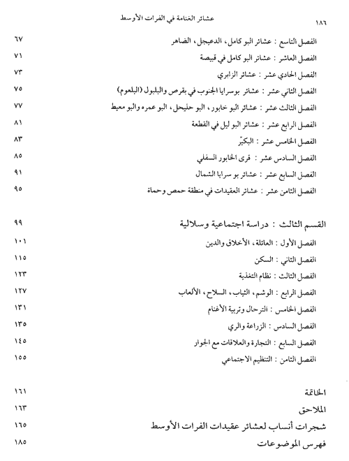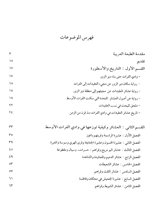 نبذة الناشر:لم يكن هنري شارل إذن مجرد باحث يتناول موضوع البداوة من خارجه ، أي استناداً إلى ما كتبه الرحّالة والباحثون المهتمون بهذا الحقل من الدراسة . فقد عايش البدو وأقام بينهم طوال أكثر من ثلاث سنوات ، وتعرّف عن كثب إلى عاداتهم ، وتقاليدهم ، وأمثالهم ، وبيوتهم ، وطعامهم ...، ووسائل الترفيه عن صغارهم ، ولباسهم و ... هذا بالإضافة إلى زيارات ميدانية متكررة إلى المناطق التي كتب عليها . ولشد ما كانت دهشتنا كبيرة عندما اجتمعنا مراراً في عامي 1994 و 1995 ببعض المشايخ والمخاتير والمسنين من سكان منطقة العقيدات ، ولمسنا مقدار الدقة المتناهية لدى هنري شارل في تحديد أسماء المواقع الجغرافية ، والتلال ، والمنحدرات ، والحوايج . وحدهم المعمرون من سكان العقيدات ما زالوا يذكرون غالبية أسماء تلك المواقع الصغيرة ، أو التي طمست بعض معالمها ، وتبدلت أسماؤها ، وسقط بعضها من التداول بعد قيام القرى والقصبات السكنية الكبيرة . هكذا حفظت دراسة هنري شارل الذاكرة الجغرافية لهذه المنطقة بشكل جدير بالإهتمام . وهي تصلح للمقارنة العلمية الدقيقة بين ما كانت عليه هذه المنطقة والتحولات التي طرأت عليها في الستين السنة الماضية التي أعقبت إنجاز هنري شارل لدراسته عن عشائر العقيدات في الفرات الأوسط .