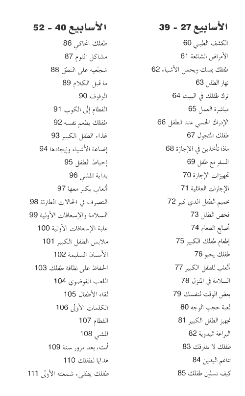 وهذا الكتاب، المزيّن بالصور والرسوم الجميلة، تم تصميمه ليكون مرشداً يومياً دائماً خلال السنة الأولى من عمر طفلك، مما يوفَر لك مرجعاً لجميع المعلومات والنصائح والإرشادات اللازمة للعناية بطفلك، وذلك عند الحاجة إلى تلك المعلومات والنصائح. إقرأ المزيد