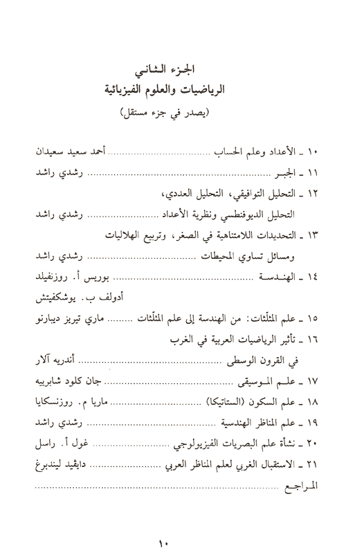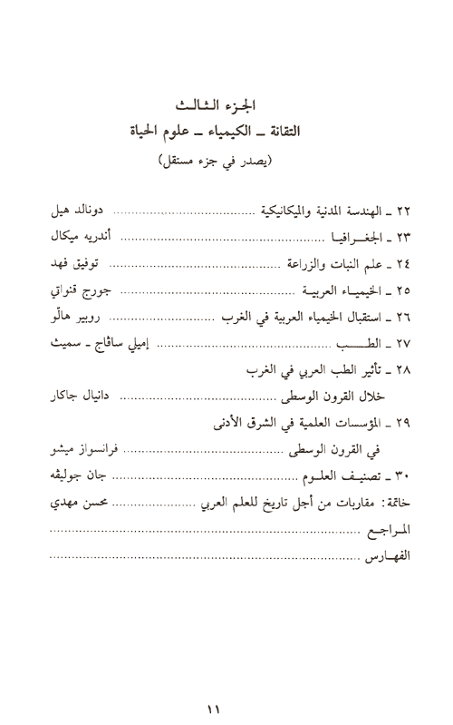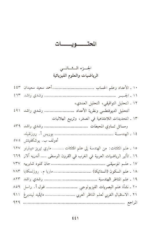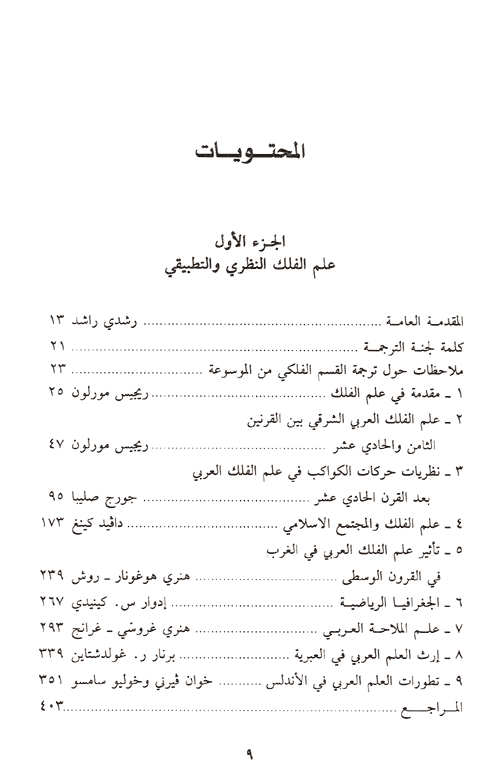 ففي العلم العربي تحقق ما كان يوجد كموناً في العلم الإغريقي: فما نجده عند العلماء اليونانيين اتجاهاً جنينياً لتخطي حدود منطقة مادلكسر طوق ثقافة معينة وتقاليدها ولاكتساء عالم بأسره. نراه وقد أصبح واقعاً مكتملاً في علم تطور حول منطقة البحر المتوسط لا كرقعة جغرافية وحسب، إنما كبؤرة تواصل وتبادل لكل الحضارات في مركز العالم القديم وعلى أطرافه. "عالمي" هي صفة بإمكاننا اليوم استخدامها لوصف العلم العربي. انه عالمي بمصادره ومنابعه، بتطوراته وامتداداته. وعلى الرغم من أن هذه المصادر هي يونانية غالباً، إلا أنها تحوي كتابات سريانية وسنسكريتية وفارسية. وبديهى ألا تتعادل هذه الإسهامات من حيث تأثيرها، إلا أن تعدديتها كانت أساسية في تكون العلم العربي. وحتى في مجال الرياضيات حيث يمكن من دون أي حرج نعت العلم العربي بـ"وريث" العلم اليوناني. إن على العلم العربي استعادة طابعه الكوني وهو طابعه الأساس، وهو ما يستوجب على الباحث تتبع هذا العلم في امتداداته اللاتينية والإيطالية كما في امتداداته العبرية والسنسكريتية والصينية، بالإضافة إلى منجزاته في لغات الحضارة الإسلامية وخاصة في الفارسية وأخيراً، من أجل معرفة وافية بالعلم العربي، لن يكون هناك يد من إرجاع هذا العلم إلى إطاره، إلى المجتمع الذي رأى فيه النور بمستشفياته ومراصده وجوامعه.