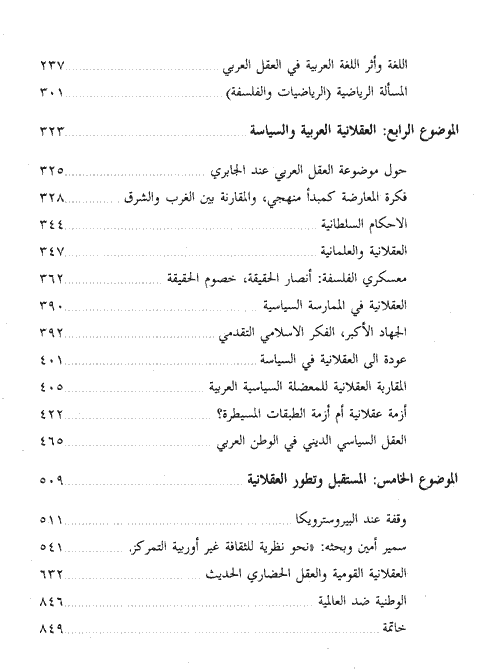 لذا سيجد القارئ في هذا الكتاب عملاً يتصدى بموسوعية وعمق لمشكلات فكرية واجهت العرب ولا زالت تواجههم، دارت ولا زالت تدور حولها سجالات حامية بين مدارس الفكر العربي المختلفة، لأهميتها في الحياة المعاصرة، ودورها المأمول في إخراجهم من مأزقهم الشامل الراهن، الذي هو مأزق فكري معرفي أيضاً، بدرجة أساسية. وقد اشترك في هذه الندوة عدد كبير من رجال الفكر والثقافة ومن معظم البلدان العربية ومن المهجر واستمرت ثلاثة أيام 12، 13، 14 /7/ 1988 ودارت في جلساتها حول المواضيع الخمسة التالية: الموضوع الأول دار حول العقلانية العربية، ماهيتها حدودها، مجالات إنتاجها: العقل وغير العقل في الوجود العربي أطروحات إزاء كتاب الجابري وكلام كل من المقدسي، نصار، أو مليل، حنفي الموضوع الثاني: منهجية النقد في العقلانية العربية: رجعية فالقة استبدادية، إرهاب الهوية، قدسية اللغة العربية، ياسين عربي والوعي الفلسفي، نمط التفكير العربي بين عقلانية الحداثة وعاطفية التراث، الصراع بين الأنا المنطقية والأنا الجدلية من منظور ابن سينا والغزالي، مداخلة ومأخذ على الجابري من محمود العالم وجورج طرابيشي. الموضوع الثالث: العقلانية العربية والتاريخ والتراث العربي: العلوم النقلية-العقلية، قضية اللغة والعقل، التمييز بين المدونة القواعدية وقواعد اللغة، اللغة وأثر اللغة العربية في العقل العربي، المسألة الرياضية (الرياضيات والفلسفة) الموضوع الرابع: العقلانية العربية والسياسية: حول موضوعة العقل العربي عند الجابري، فكرة المعارضة كمبدأ منهجي، والمقارنة بين الغرب والشرق الأحكام السلطانية، العقلانية والعلمانية، معسكري الفلسفة: أنصار الحقيقة، خصوم الحقيقة، العقلانية في الممارسة السياسية، الجهاد الأكبر، الفكر الإسلامي التقدمي، عودة إلى العقلانية في السياسة، المقاربة العقلانية للمعضلة السياسية العربية، أزمة عقلانية أم أزمة الطبقات المسيطرة، العقل السياسي الديني في الوطن العربي. الموضوع الخامس، المستقبل وتطور العقلانية: وقفة عند البيروسترويكا، سمير أمين دعبثة: "نحو نظرية للثقافة غير أوربية التمركز. العقلانية القومية والعقل الحضاري الحديث، الوطنية ضد العالمية. إقرأ المزيد