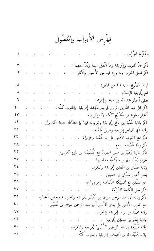 خصص الجزء الأول لأخبار أفريقية من حين الفتح الأول، في خلافة أمير المؤمنين عثمان بن عفان رضي الله عنه ذاكراً من كان فيها من الملوك والولاة من حين الفتح الأول إلى حين ابتداء الدولة اللمتونية الرابطية. وفي الجزء الثاني اختص المؤلف أخبار جزيرة الأندلس من حين الفتح الأول مروراً عن وليها من الخلفاء الأمويين، والعرب الفهريين، ومن قام عليها من الثوار الأندلسيين وهكذا إلى حين دخول المتونة إلى الأندلس سنة 478. والجزء الثالث اختص فيه المؤلف أخبار الدولة المرابطة اللمتونية، ثم الدولة الموحدية وما تخلل للموحدين من النصر والتأييد إلى حين انقراض دولتهم، ذاكراً من ثم الدولة الحفصية الموحدية التهانية من البلاد الأفريقية، والدولة اليهودية المتوكلية والنصرية الأحمرية في البلاد الأندلسية والدولة السعيدة المرينية في البلاد الغربية، حيث اختصر في ذلك كله ما اشتهى أمره وأمكنه ذكره وذلك إلى انقضاء الدولة الموحدية واستيلاء الإمارة اليوسفية المرينية على حضرتهم المراكشية. إقرأ المزيد