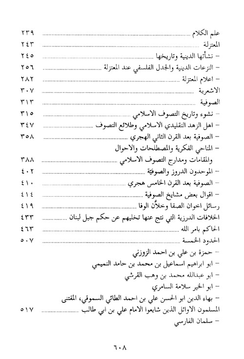 وتشتمل هذه الدراسة معلومات تاريخية موثقة عن دور من إعلام التوحيد كالخليفة الفاطمي الإمام الحاكم بأمر الله، والإمام حمزة بن علي بن أحمد، وسليمان الفارسي والأمير رافع أبي الليل الكلبي والمقداد بن الأسود الكندي، والأمير السيد عبد الله التنوخي.نبذة الناشر:يستند هذا الكتاب إلى أحداث ووثائق تاريخية، وإلى مصادر ومراجع لأكثر الباحثين والمؤرخين شهرة، ويحث القارئ على المتابعة وطلب الاستزادة، ومن ثم، الاستنتاج التاريخي. لقد استطاع المؤلف سليمان علم الدين أن يبسط، بدقة وإسهاب، مراحل مهمة من تاريخ الفكر العربي والإسلامي، وأن يبين بوضوح مناحي المدارس الفكرية، والمذاهب الفلسفية، والفرق الإسلامية التي أدى الاختلاف فيما بينها، في التفسير والشرح والرأي والمناظرة، إلى غنى حضاري أكيد.