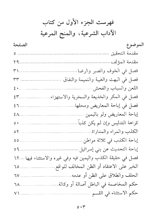نبذة نيل وفرات:"الآداب الشرعية والمنح المرعية" لمصنفه الإمام العلامة محمد بن مفلح الحنبلي من علماء القرن الثامن الهجري، كتاب جليل القدر، حافل بالعلم النافع القائم على الأصول الصحيحة والفهوم السديدة. ولقد أراد مصنفه أن يكون كتاباً جامعاً لكل ما من شأنه أن يعين على تحقيق السعادة الإنسانية في الدنيا والآخرة، وذلك ...بالسير على هدي المنهج الرباني الذي ارتضاه الله لعباده، وتكفل لمن سار عليه بألا يضلّ في الدنيا وألا يشقى في الآخرة، وذلك بما أودع في كتابه، وبما أبان على لسان رسوله من الدلائل الهادية إلى كل خير، الصارفة من كل سوء وشر. وذلك بتحقيق الفهم الصحيح للوجود من خلال عقيدة صافية واضحة، وشريعة عادلة محكمة، وأخلاق نبيلة صالحة، وشعور عميق بالمسؤولية في الدنيا والآخرة، ضمن إطار العبودية الكريمة للخالق الكبير المتعال، ذي الحلال والإكرام. هذا وأن الناظر في "الآداب الشرعية" بعين البصيرة لمشرف منه على كتاب زاخر بالأصول العظيمة في الاعتقاد والأخلاق والفضائل النفسية الفريدة منها والاجتماعية التي تحقق لمن عمل به صحة الروح والعقل والبدن، وأن في اختيار ابن مفلح للفظ "الآداب" عنواناً لكتابة لَغَوْراً على حقائق المعاني، وفقاهة في اختيار الدلالات وانتزاع الإشارات ذلك أن "الأدب" هو: اجتماع خصال الخير في العبد، وأنه على ثلاثة أنواع: أدب مع الله سبحانه، وأدب مع رسول الله صلى الله عليه وسلم وشرعه، وأدب مع خَلْقه. وقد ألّف الإمام ابن مفلح كتابه "الآداب الشرعية" ثلاث مرات: الكبرى مجلّدان وهو الذي نقلب صفحاته، والوسطى مجلد، والصغرى مجلد لطيف. والكبرى منها ذات قيمة علمية كبيرة لاشتمالها على كثير من أصول الأخلاق المستقاة من الكتاب والسنة وما انبثق عنها من علوم في إطار الثقافة العربية الإسلامية، وقد تحرى فيه أن يكون كالفروع في الفقه جامعاً لخلاصة ما ألفه فيه أئمة الحنابلة من المصنفات، لذا يتبين للقارئ في هذا الكتاب "الآداب الشرعية" أن مؤلفه أمام ذو اطلاع واسع، وفهم ثاقب لمذهب الإمام أحمد بن حنبل، وإلمام غير قليل لمذاهب الأئمة المتبوعين، ولذلك في كتابه هذا نصوصاً كثيرة ينقلها عن الإمام أحمد وعن تلامذته، وعن العلماء الذين جاؤوا من بعدهم ممن ينتمي إلى هذا المذهب، ونجد أيضاً النصوص النبوية الكثيرة ينسبها المصنف إلى مخرّجيها من أمهات كتب السنة، وهو في كثير من الأحيان لا يخلي هذه النصوص من تعقبات حديثية في التصنيف والتحسين والتصحيح مما يدل على براعته في هذا الفن وحسن تأتّيه لما يستشهد به من المنقولات لا سيما أنه كان في أغلب الظن يدوّن ذلك من حفظه. وقد ذكر المصنف جملة من الآداب مما لا علاقة له بالشرع، وإنما هي آداب اجتماعية توجد بحسب الأعراف السائدة في مجتمع ما، وهي مما لم يرد فيها نص من حيث الإقرار أو الإبطال وتدخل في قسم المباحثات فلا داعي لاستفتاء الشرع فيها، كما تعرض أيضاً لأمور لا علاقة لها بالشرع هي ألصق بعلوم البشر ومعارفهم التي تتجدد وتنمو بالملاحظة والتجربة والاستنتاج كالطب وغيره.