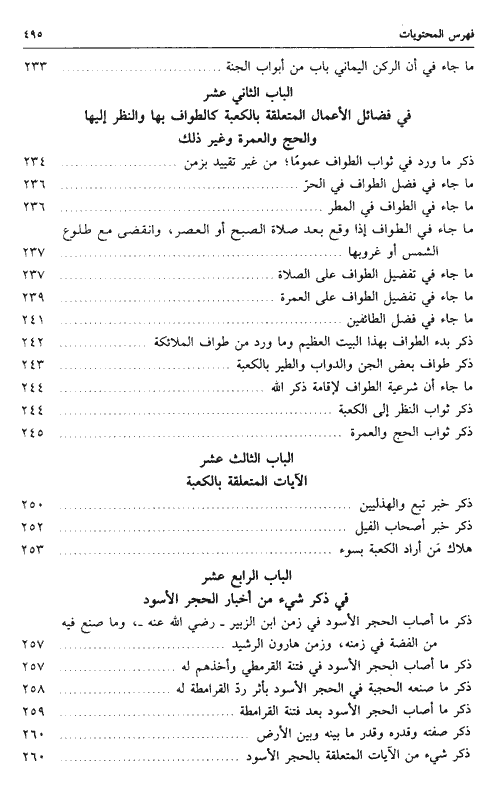 وقد ذكر فيه تاريخ المسجد الحرام، وبنائه وعمارته في مختلف العصور، متحدثاً عن الملامح الجغرافية والتاريخية والسياسية والاجتماعية للجزيرة العربية، مع تنويهه بفضائل الكعبة والأعمال المتعلقة بها والمواضع المباركة في مكة وحرمها، مع استقصاء لتاريخ مكة في الجاهلية، والتحدث عن المآثر التي أقيمت بمكة وحرمها، مضيفاً إلى ذلك كله ما وصل إلى علمه من أخبار ولاة مكة في الإسلام، كما تحدث فيه عن مكة وحرمها، والآثار المروية فيها، ووف الكعبة وعمارتها، ومصلى الرسول صلى الله عليه وسلم، وثواب دخول الكعبة وفضائلها، والآيات المتعلقة بها، وأخابر الحجر الأسود... كما وتكلم عن توسعه المسجد الحرم وعمارته... كما وعمد إلى سرد أخبار بني قصي ومآثرهم في الجاهلية، وأجواء قريش وحكامهم في الجاهلية. إقرأ المزيد