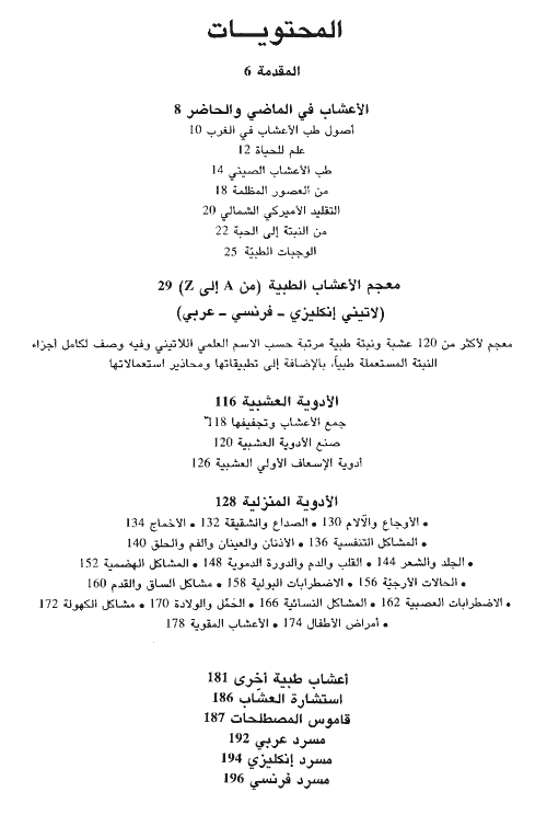 هذا وأن الأعشاب المذكورة في هذا الكتاب عبارة عن مقتطف نموذجي يمثل هذه النباتات الفعالة بدءاً بالأعشاب الشرقية الغربية مثل هوانغ والجنسنغ وانتهاءً بالنباتات الأكثر شيوعاً مثل التفاح والملفوف (الكرنب)، خصوصاً أننا في الكثير من الأحيان ننسى ما للعديد من المواد الغذائية المألوفة التي نتناولها من خصائص طبية هامة اعتدنا الاستخفاف بها. إلا أن المؤلف في كتابه هذا يعطي القارئ لمحة عنها مبيناً فوائدهما الطبية. وهو إلى هذا لم يهدف إلى مجرد إعطاء تفاصيل وافرة حول عدد معين من النباتات والأعشاب، أو إلى توفير لوائح من الأدوية المختلفة التي يمكن تناولها لتخفيف أو تسكين الأعراض، بل هو حاول عوضاً عن ذلك النظر إلى الطريقة التي استعمل بها المعالجون التقليديون الأعشاب في العديد من الحضارات. وقد اقترح طريقة في معالجة العلل تركز على شفاء الشخص بأكمله، وقد تمثل هذه الاقتراحات حلاً فعالاً بالنسبة للبعض، أما للبعض الآخر فلن تكون سوى نقطة انطلاق لاستكشاف أعمق وأوسع لقدرة الأعشاب على الشفاء. إقرأ المزيد