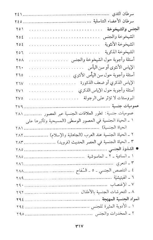 ثم انتقل المؤلف الدكتور غسان الزهيري، إلى مواضيع حساسة بالغة الأهمية في التربية والتوجيه والثقافة الجنسية، يجب أن يعرفها كل واحد منا، وهي جميعها مستمدة من التعاليم السماوية والوصاية التي جاءت بها الأديان السماوية هدى من لدن خالق الكون لعباده الصالحين. باحثاً في التربية الجنسية منذ الطفولة والمراهقة مع سرد ما يعتري هذه المرحلة من مشاكل وعقد، وما يتوجب على الأهل من سلوك وتفهم، مع شرح ما قد يحصل للمراهقين في هذه المرحلة من بلوغ وشذوذ، وكل ما يجب معرفته عن الجهاز التناسلي عند الذكر والأنثى، عله يكون دليلاً لهم إلى حياة جنسية سليمة حميمة وواعية، ومعيناً على فهم مشكلاتهم الجنسية فيتبعون الطريق السليم، ويبتعدون عن الممارسات الجنسية الخاطئة خارج الحياة الزوجية.. ثم انتقل إلى موضوع الجنس والشباب، شارحاً فيزيولوجية العمل الجنسي مما يسمح بعبور ليالي الزواج الأولى بسلام، وإدامة التفاهم الجنسي بين الزوجين، ومجيباً على معظم الأسئلة التي تراود خواطرهم وتقلق راحتهم. كما تناول المؤلف موضوع سن اليأس والجنس والشيخوخة باهتمام بالغ وما يعتري هذه المرحلة من أمراض واضطرابات نفسية وجسدية، مجيباً عن كثير من الأسلة التي تراود المسنين وتعكر صفو حياتهم وعيشهم، وذلك بأسلوب علمي واضح مقروناً بالأمثلة والبراهين العلمية. كذلك انتقل المؤلف أيضاً إلى موضوع بالغ الأهمية يتعلق بالأمراض الجنسية والتناسلية المتنقلة عبر الجنس وغيره، والتي تهدد علاقاتنا وحياتنا الجنسية والعائلية والاجتماعية، باحثاً في كثير من الأمراض والأعراض والاضطرابات والمشاكل الجنسية المختلفة الخاصة بالرجل والنساء كباراً وصغاراً على حد سواء والشذوذ الجنسي بأنواعه، وقد خصص المؤلف جزءاً كبيراً لموضوع الإيدز أو السيدا. باحثاً في أعراضه ومخاطره وطرق الوقاية منه.
