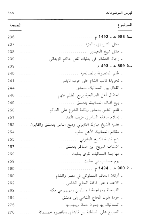 وكتب أخبار العلماء والقضاة والقادة ورجال الإدارة. وتطرق إلى الظواهر الاجتماعية في العهدين المملوكي والعثماني، كالأعياد، والمواكب، والمناسبات الهامة، والانتصارات في الحروب، ورصد أخبار قافلة الحج سنوياً، وأعمال السطو، والنهب التي كانت تتعرض لها، وذكر الأوبئة والطواعين، وأحوال المناخ وتبدلاتها، وسلّط الضوء على الحالة الاقتصادية في مصر والشام، أيام المماليك، والعثمانيين، فتناول أوضاع السوق، والأسعار، والتجارة، ونقص أو زيادة المواد الغذائية، وتغير العملة النقدية، وتحدث عن العمارة والعمائر في الدولة وأصحابها.