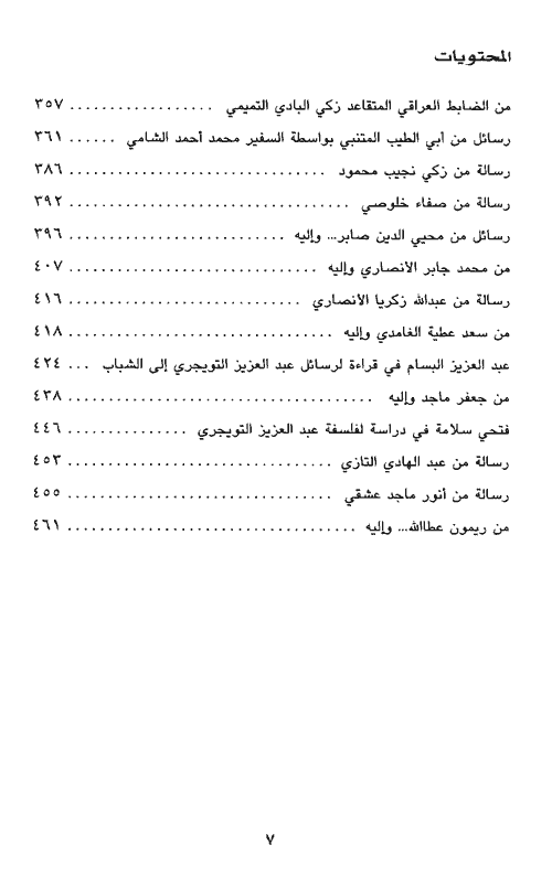 أسماء وكلمات تبلورت من جديد في سماء الأدب صارخة تطلب الحرية من الملكية الخاصة. منها ما هو صادر من الكاتب وبعضها مرسل إليه من رجالات شهدوا على حياته في الحرس الملكي؛ موضوعاتها تدور بين المدح والثناءات، وتقديم التحيات والنصائح تارة أخرى، والعديد من المواضيع الأخرى التي تكشف عن بعض الأمور الخاصة بالكاتب والعامة. إقرأ المزيد