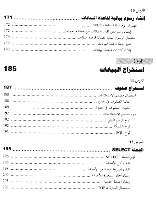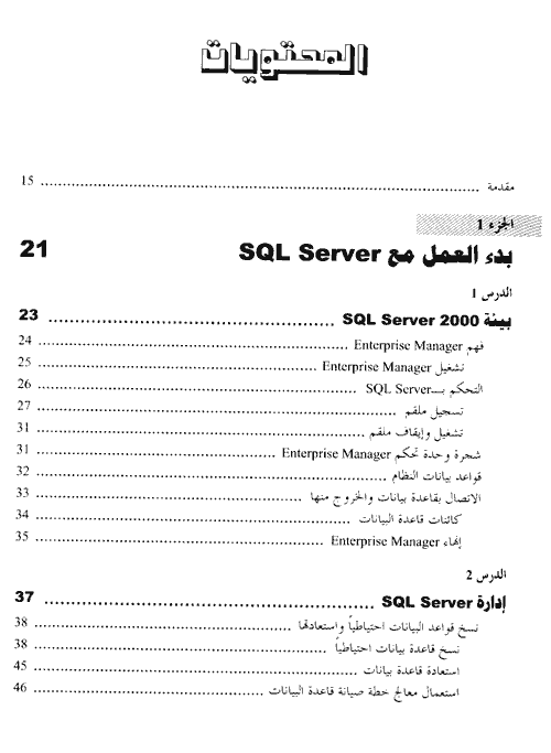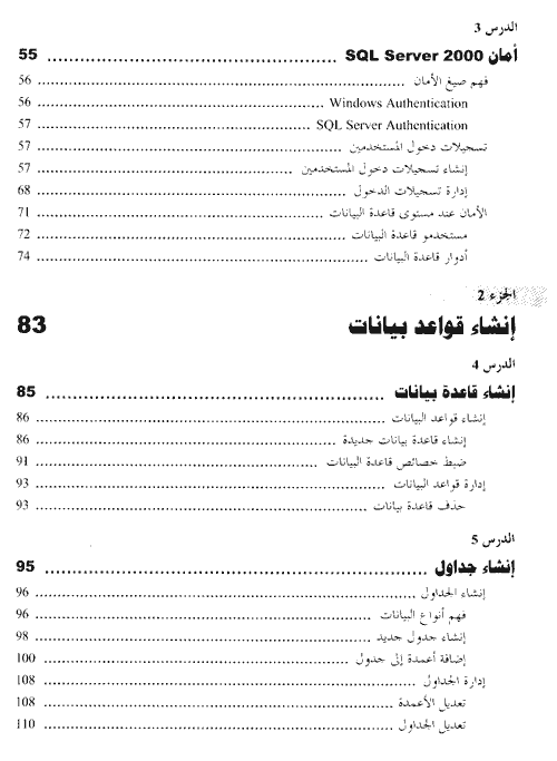 نبذة نيل وفرات:يضم الكتاب دروساً في كيفية استعمال Server 2000 Enterprise Manager SQL لإنشاء وإدارة قواعد البيانات وكائناتها، للانتقال بعد ذلك إلى Query Analyzer (محلل الاستعلامات) للتعلم على كيفية أتمتة الوظائفية باستعمال النصوص البرمجية والفوادح والدلالات والإجراءات المخزنة، وقد صمم هذا الكتاب لكي يستعمل مع SQL Server 2000، غير المشمول القرص ...المضغوط المرفق معه، وهو مصمم للمبتدئين في عالم قواعد اليانات العلائقية، وكذلك للأفراد الذين يملكون خبرة مع أنظمة إدارة قواعد البيانات الأخرى كمايكروسوفت أكسس والذين يقومون بالترقية إلى SQL Server 2000. والكتاب يستعمل المفردات العربية الرسمية لمايكروسوفت كما أنه مرفق بقرص.نبذة الناشر:مع تزايد الطلب على برامج متطلبة، يستطيع Microsoft SQL Server تخفيض الوقت المطلوب لتطوير برامج تجارة إلكترونية ومخازن للبيانات بشكل كبير وإنزالها إلى الأسواق. سواء كنت جديداً في عالم قواعد البيانات أو معتاداً على مايكروسوفت أكسس أو أوراكل أو غيرها من برامج قواعد البيانات العلائقية، سيشكل هذا الكتاب الطريقة المثالية لتتعلم كيف يستطيع أن يعمل SQL Server تحت إمرتك.