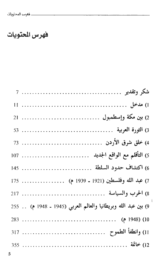 تلقي ماري ولسن الاضواء علي حياة الملك عبد الله وسياساته التي ظلت تابعة إلى مصالح متبادلة بينه وبين بريطانيا التي وقفت من ورائها الحركة الصهيونية. وهذه المتابعة التاريخية للمؤلفة تعكس مدى تداخل عملية مصالح عبد الله مع مصالح بريطانيا والتي ظلت مستمرة طوال سني حياته كلها.