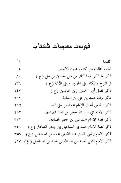 وبعد الحديث عن الحسن والحسين ينتقل صاحب عيون الأخبار إلى سرد حياة الإمام محمد الباقر والإمام جعفر الصادق ثم يستعرض بالتفصيل الخلاف الذي حصل بين الشيعة بعد وفاة الإمام جعفر الصادق. والذي يلفت النظر في هذا السفر هو الحديث الذي يدور فيه المؤلف سيرة حياة وتنقلات الأئمة المستورين الذين بدءوا بالإمام محمد بن إسماعيل وانتهوا بعبد الله المهدي الذي أسس الدولة الفاطمية في المغرب. وبما أنه كان هناك اختلاف في أسماء الأئمة والدعاة في دور الستر وخاصة فيما يتعلق بتتالي الأئمة وأسمائهم فكتب يقول: "وكان الدعاة أيام الأئمة المستورين منذ استتار الإمام محمد بن إسماعيل يسمون بغير أسمائهم ويختلفون في الأسماء إخفاء لأمر الله وستراً لأوليائه لتغلب الأضداد وقوة أهل العناد، ولذلك وقع الاختلاف في الأئمة المستورين، وكثر فيهم خوض الخائضين وقول القائلين. إقرأ المزيد