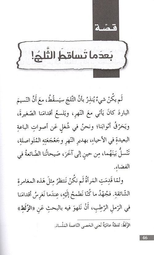 وهذه القصص تمثل عملاً من الأعمال الأدبية التي تساعد الناشئ على تدعيم أسلوبه وعباراته ومفرداته ...اللغوية. كما وتتضمن هذه القصة مجموعة من الأسئلة التي تعمد المؤلف ضمّها في نهاية القصة ليناقش من خلالها الناشئة الأفكار والمعاني التي تمّ استيعابها في واقع القصة وقضاياها.نبذة الناشر:معلّم شاب يستقبل الآمال، ومعلّم متقاعد يستعيد الذكريات... وخمس قصص أخرى فيها البطولة، والمغامرة والثأر، والحنان، والرأفة... إقرأ المزيد