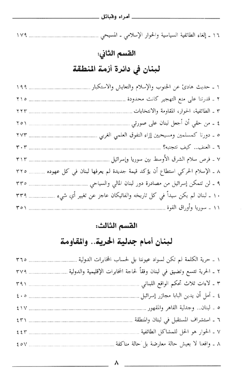 وهذا الكتاب يضم أبرز المقابلات الإعلامية التي تضمنت مواقفه المحايثة للأوضاع اللبنانية على مدى نيف وعشر سنين، وقد تمّ نشرها أو إذاعتها عبر المجلات والإذاعات والتلفزيونات والفضائيات اللبنانية والعربية والدولية. وقد روعي في تبويبها أمرين: التسلسل الموضوعي والتسلسل الزمني، مما يعين القارئ على تتبع مواقف سماحته في الزمان والمكان على مدى تلك السنين المتطاولة. إقرأ المزيد