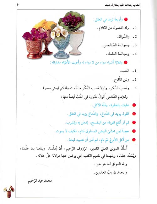 وهذا الكتاب "أعشاب ونباتات طبية بمتناول يديك فوائدها والتداوي بها" وهو يعالج كافة جوانب الأمراض وفيه لكل داء دواء استخدمه قدمائنا في الأعشاب والنباتات وفيها وصفات شعبية ناجحة لتسكين الوجع، ودمل الجروح، وإطفاء كل حرارة والتهاب، ومكافحة البثور والأورام وضغط الدم، وتصلب الشرايين، وتطهير الدم، وعسر الهضم، وتحسين البصر، ودرّ البول، ومكافحة فقر الدم، ودود المعدة، وإدرار الحليب وغيرها... بالإضافة إلى ما يحتويه من معلومات نظرية قيمة فقد زينت صفحاته بالصور الملونة لإعطائه بعض الروح المتألقة والزاهية.