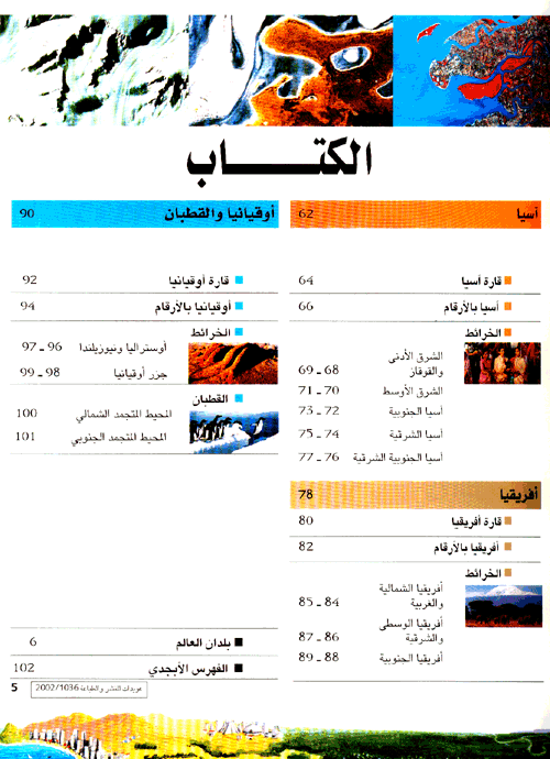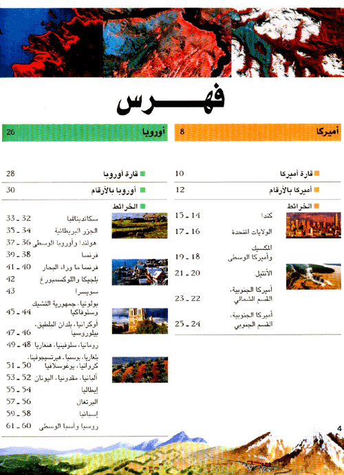 تأتي في بداية كل جزء صفحتان مزدوجتان مخصصتان ...للقارة: نجد على الصفحة الأولى كل ما يتعلق بالتضاريس، كما نجد على الصفحة الثانية خارطة سياسية ومعطيات اقتصادية. وفي نهاية الكتاب، مجد المناطق القطبية الشمالية والجنوبية. بالإضافة إلى فهرس كامل يحدد مواقع البلدان والمدن والجبال. وقد زوّد الأطلس بالصور والخرائط الموضحة.نبذة الناشر:موسوعة لاروس موسوعة عامة بالمواضيع من عدة أجزاء، تجول في ميادين المعرفة شرحاً توضيحياً. معلومات دقيقة وإخراج مشوق تجعل منها رفيقاً مثالياً لتحضير دراسة أو للإجابة عن تساؤلات عالم اليوم.