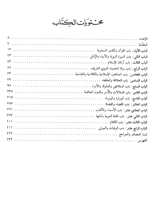 وهو يحتوي على أواخر العلوم الدينية والشرعية كالعلوم القرآنية والسيرة النبوية، ورواة الحديث وأركان الإسلام، والمذاهب الإسلامية والكلامية والفلسفية، كما يحتوي على سرد لأواخر رجالات والسياسة، كالخلفاء والسلاطين والملوك والأمراء، والرؤساء والوزراء والقضاة هذا بالإضافة إلى أواخر السلالات والأسر والدول الحاكمة وأواخر العلوم اللسانية كاللغة العربية وآدابها والكلام؛ وقد تناول المؤلف هؤلاء الأواخر في كل العصور العربية-الإسلامية بدءاً من العصر الجاهلي وانتهاءً بالنصف الأول من القرن العشرين أو ما بعده بقليل.