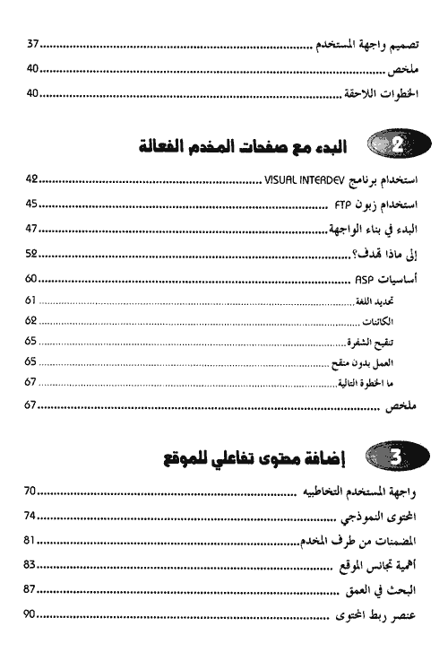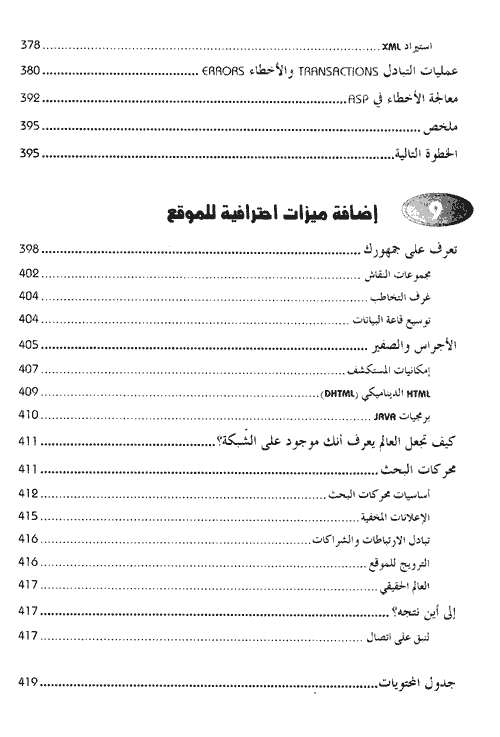نبذة الناشر:يعالج هذا الكتاب كل التقنيات اللازمة لبناء موقع فيه قاعدة بيانات واستعلامات ونمذجة للبيانات بالإضافة إلى الفعاليات المطلوبة من موقع احترافي على الوب. مثل: HTML، ODBC، Visual InterDev، SQL، Cookies، XML، DHTML... إلخ.