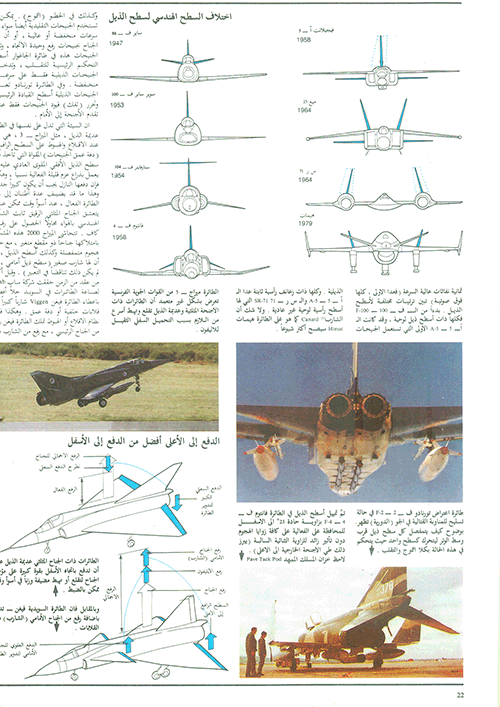 يقع الكتاب في ثلاثة أجزاء: تقنية الحرب الجوية، والطائرات وأسلحتها، وتكتيك المعركة الجوية، يضم القسم المتوسط حوالي 100 صفحة من العمل الفني الملون الرائع لوصف فعالية أحدث الطائرات المقاتلة والهجومية في العالم حالياً. وما تحمله كل منها من الحمولات، من الأسلحة المحملة الموزعة تحتها، حسب المقياس، ولم يسبق أن حاول أحد أن ينفذ إلى قلب هذا الموضوع بهذا الشكل، فهو يصور الحقيقة بأن طائرات الفتال الحديثة ليست مجرد آلة جميلة، لأنها تمثل التصميم الدقيق لتحمل السرعة، وجهد الاستثمار في المعركة الجوية القاسية.