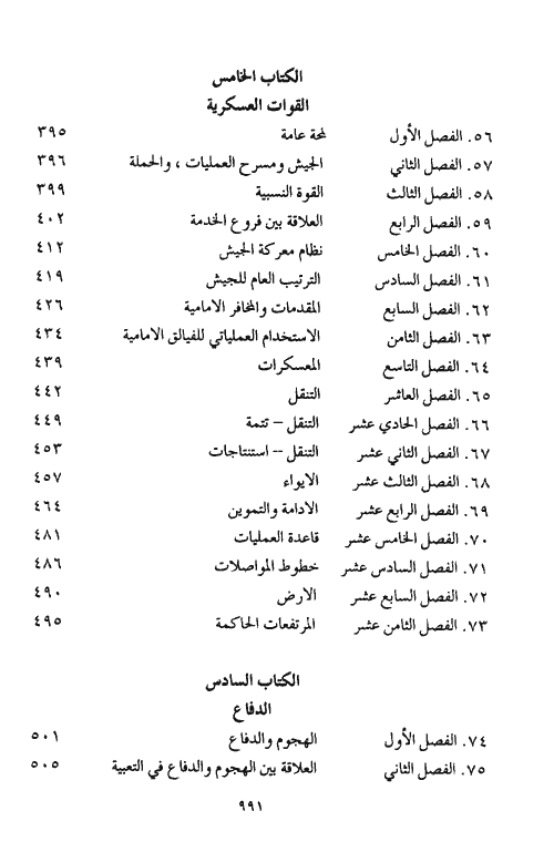 وفي الكتاب الثالث يعالج المؤلف بعمق معنى الاستراتيجية والعبقرية والعسكرية ويناقش الروح القتالية وعصريتها، ويحدد مصادر الروح والقتالية بعاملين هما سلسلة الحملات الناجحة، و"الجهد المستديم الذي يبذله الجيش حتى الحدود القصوى لطاقته". ويبحث الكتاب الرابع في الاشتباك والعناصر الفعالة في الحرب وبأنشطتها العسكرية الأساسية ويركز الكتاب الخامس على بعض المواضيع التقنية الأكثر تحديداً للحرب، ويبحث الكتاب السادس في الدفاع، وهو الشكل الأقوى للحرب، أما الكتاب السابع فهو يدور حول الهجوم بينما يركز الكتاب الثامن والأخير على خطط الحرب.نبذة الناشر:يظل "عن الحرب" وبغض النظر عن شموليته ومعالجاته الدقيقة، ونمطه الواضح، عملاً غير كامل، أي لم ينجز نهائياً وبالصورة التي أرادها مؤلفه، ويتضح ذلك من طرائق تفكيره وكتابته، لقد كان كلاوزفيتز في العشرينيات من عمره عندما بدأ تدوين أفكارها الأولى وملاحظاته عن طبيعة العمليات العسكرية Military Process وعن المكانة التي تحتلها الحرب في الحياة الاجتماعية والسياسية. كان هناك إحساس عميق بالواقعية، وتشكك دائم بالمسلمات والنظريات المعاصرة، يطبع تلك الملاحظات والأطروحات التي دونها كلاوزفيتز، كما اكتسب بشيء من التأملات والافتراضات الممتزجة بالماضي مما يسبغ عليها نوعاً من التقويم والإصرار الداخليين، ولسنا نغالي كثيراً لو اعتبرنا كتاباته قبل عام 1806 كتصورات لا رابط بينها-كقطع الصخر التي تعد مقدماُ لبناء لم يتم تصميمه بعد.