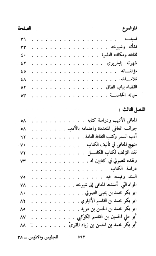 تنقسم هذه الدراسة إلى قسمين. الأول يتضمن دراسة عن المعاني بن زكريا النهرواني، وعن أدب السمر حتى عصره، الثاني تحقيق كتابه، ومنهجه في تأليف الكتاب. وقد تجلى عمل المحقق تخريج الآيات القرآنية الكريمة والأحاديث النبوية الشريفة، والتعريف بالإعلام الواردة في الأخبار، ووضع عناوين لها ثم التعليق عليها بما فيه زيادة إيضاح أو إكمال نقص أو تصحيح وهم، كما قام، بتخريج المسائل النحوية واللغوية والصرفية والبلاغية وغيرها من مظانها بما فيه زيادة إفادة للقارئ وتشويق له وحث على القراءة. إقرأ المزيد