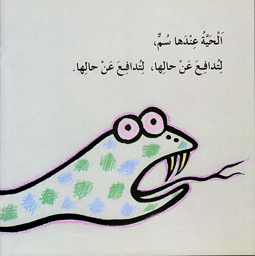فإذا كانت حيوانات الغابة تدافع عن أرضها، فكيف حال الإنسان ...الذي تسلب منه أرضه ألا يجدر به أن يدافع عنها بشتى الطرق. والهدف من هذه القصة تربية الطفل على حبّ الأرض والدفاع عنها بكل ما أوتي من قدرات.نبذة الناشر:نص يعرض مظاهر الدفاع عن النفس في الطبيعة، عبر نماذج عدّة من الحيوانات وصولاً إلى الإنسان.. الجُمَل قصيرة، والرسوم أخذت المساحة الأكبر إقرأ المزيد