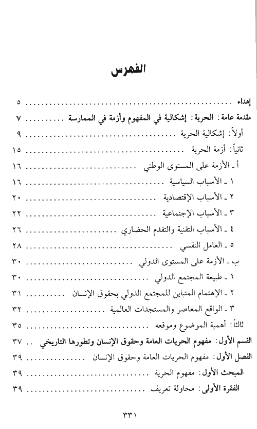 وفي هذا الكتاب يطرح الكاتب هذا الموضوع موسعاً متناولاً بالدراسة الحريات العامة وحقوق الإنسان بين النظرية والتطبيق، وبين النص والواقع وذلك من خلال أقسام الكتاب الثلاثة، كان مدار البحث في القسم الأول حول الحرية، إشكالية في المفهوم وأزمة في الممارسة حيث تحدث وبإسهاب في فصول هذا القسم حول مفهوم الحريات وحقوق الإنسان وتطورها التاريخي، وخصص القسم الثاني لموضوع الضمانات الأساسية لحقوق الإنسان وحرياته، ودار القسم الثالث حول أنواع الحقوق والحريات العامة.نبذة الناشر:تطرح مسألة الحرية منذ أن كان أول خرق للأمر الإلهي... وكان العقاب بالعذاب الأبدي ثمناً لأول خطيئة... عندما وضعت إرادة الإنسان-أول إنسان-وحريته في الاختبار الأول.