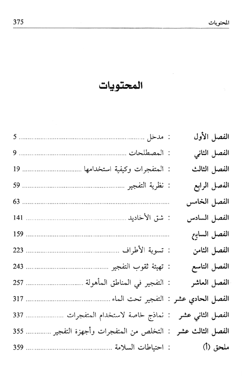 وفي هذا الكتاب يعرض المؤلف للتقنية الهندسية للمتفجرات يتحدث أولاً عن المصطلحات المستخدمة في المتفجرات أثناء عملية التفجير ثم يستعرض أنواع المتفجرات مبيناً كيفية استخدامها ذاكراً من ثم نظرية التفجير وكيفية وتطبيقها التي شرحها ضمن الخطوات التالية: شق الأخاديد، تسوية الأطراف، تهيئة ثقوب التفجير، لينتقل من بعد ذلك للحديث عن عملية التفجير في المناطق المأهولة وتحت الماء ليقدم من ثم نماذج خاصة لاستخدام المتفجرات وأجهزة التفجير وأردف ذلك بمحلق ضمّنه المؤلف مجموعة توصيات هي بمثابة احتياطات للسلامة تجب مراعاتها عند التعامل مع المتفجرات من أول مرحلة والى آخر مرحلة فيها. تلك التوصيات التي تم التوصل إليها تعتبر كفيلة إلى حد كبير بتجنب الكثير من المشاكل التي قد يتعرض لها العاملون في هذا الحقل وفي جميع المراحل. إقرأ المزيد