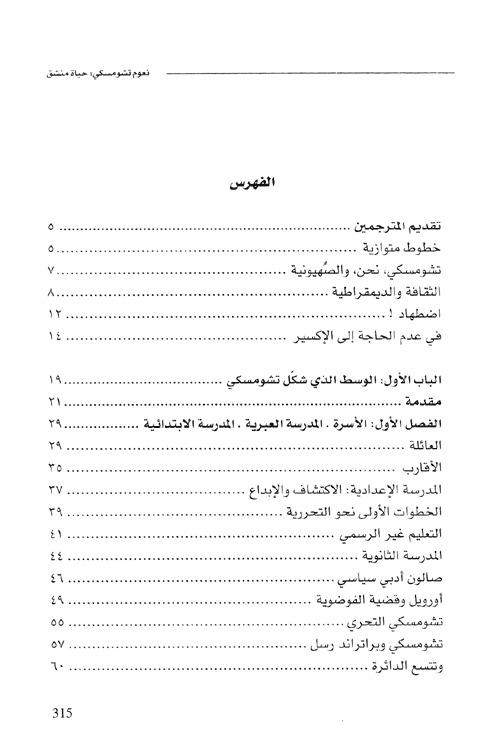 وإذا كنا قد اطلعن على بعض من أعمال تشومسكي المترجمة، فنحن في حاجة فعلاً لأن نعرف عنه شيئاً: حياته، سيرته، تطورات فكره.