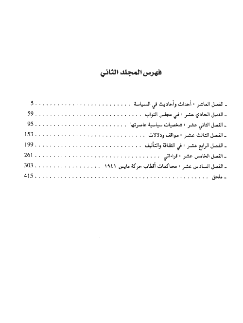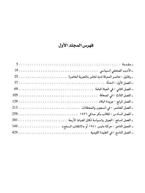 وفقاً لهذا التسلسل تم تقسيم فصول هذا الكتاب الذي يحتوي كما أسلفنا على مذكرات رفائيل بطي الكاملة، كما احتوى الكتاب على مجموعة هامة من الصور الفوتوغرافية التي تطل على مختلف المراحل التي عاشها رفائيل سواء السياسية أو الشخصية أو العملية. إقرأ المزيد
