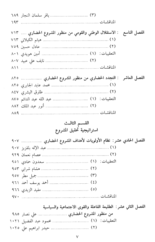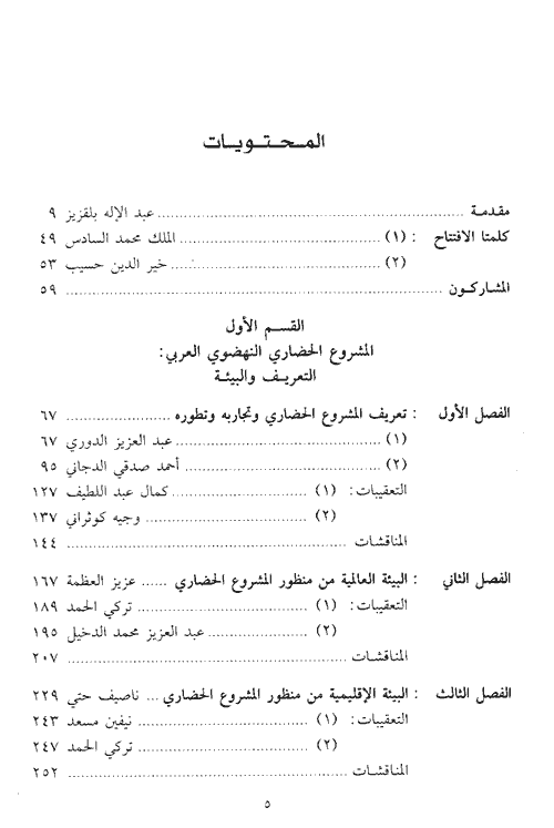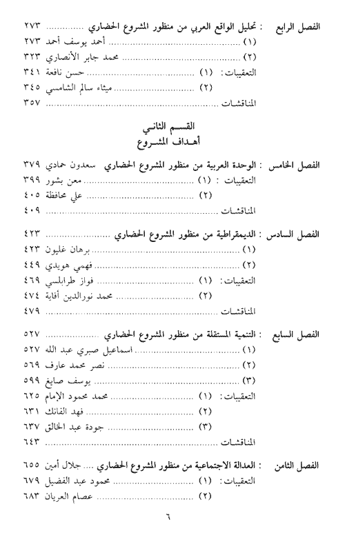 يمثل هذا الكتاب محاولة جادة لإقرار الأسس والعناصر التي يقوم عليها هذا المشروع النهضوي العربي، وهي ستة: