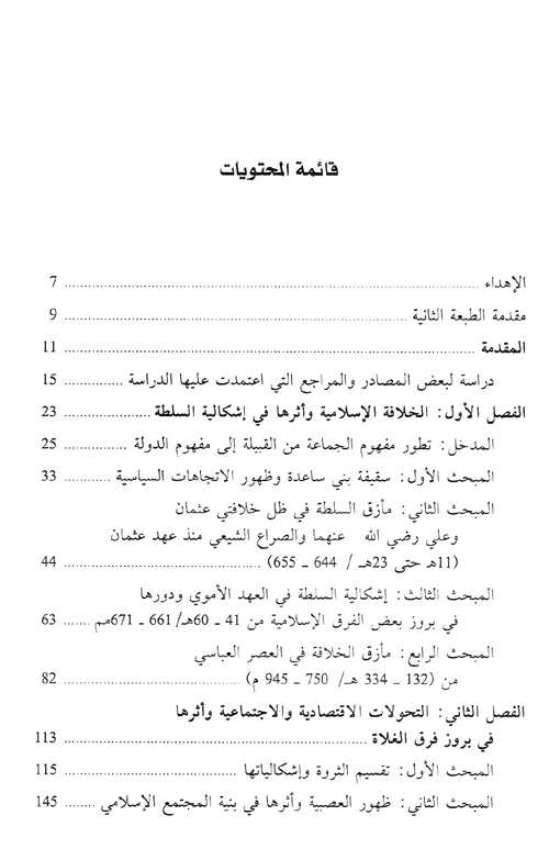 ضمن هذا الإطار يأتي البحث في هذا الكتاب "الصراع على السلطة وأثره في نشأة بعض غلاة الفرق الإسلامية واتجاهاتها. وقد تطلب ذلك من الباحثة العودة إلى الجذور التاريخية والمتمثلة في العصبية القبلية قبل الإسلام، ثم تتبع نشأتها مع انتشار الدين الإسلامي وما أفرزته هذه العصبية القبلية من ظهور لحركة الشعوبية والزندقة التي فجّرها الصراع بين القوميات الأخرى للنيل من القومية العربية، وغرس الفتن والفوضى وبثّ أفكار الزندقة التي انتشرت بين فرق الغلاة وبسبب ذلك طفحت على السطح النزعات القبلية ثم المذهبية بعد وفاته عليه السلام مباشرة 10هـ/632م وتفرقوا شيعاً وأحزاباً مع أن القرآن أوضح موقفه وبشكل حازم من الذين فرقوا دينهم من أجل الوصول إلى السلطة مستغلين الوضع السياسي والاقتصادي والاجتماعي والثقافي.