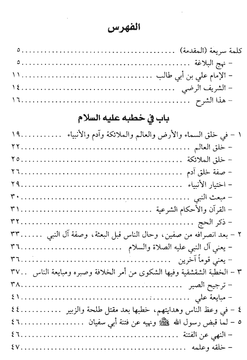 وأيضاً وأيضاً، إن في نهج البلاغة دراسة واضحة لمجتمع الصدر الأول، حيث المهاجرون والأنصار، وكيف تمّ انتقال الخلافة عنه إلى من تقدمه من الخلفاء، كما خصّ عهد الخليفة عثمان رضي الله عنه بأوسع ما يكون مبيناً الفتنة وما وقع من أحداث شابتها أخطاء. وهكذا فإن نهج البلاغة هو مائدة غنية بألوان الفنون والعلوم يشبع كل ناظر فيه، ولمزيد من مساعدة القارئ على قراءة معانيه والتمعن فيها بيسر وسهولة يأتي هذا الكتاب الذي يشرح ما يمكن أن يغلق على القارئ من عبارات، ويوضح له ما غمض في النهج من كلمات، ويوسع أفقه بما ورد فيها من معاني. إقرأ المزيد