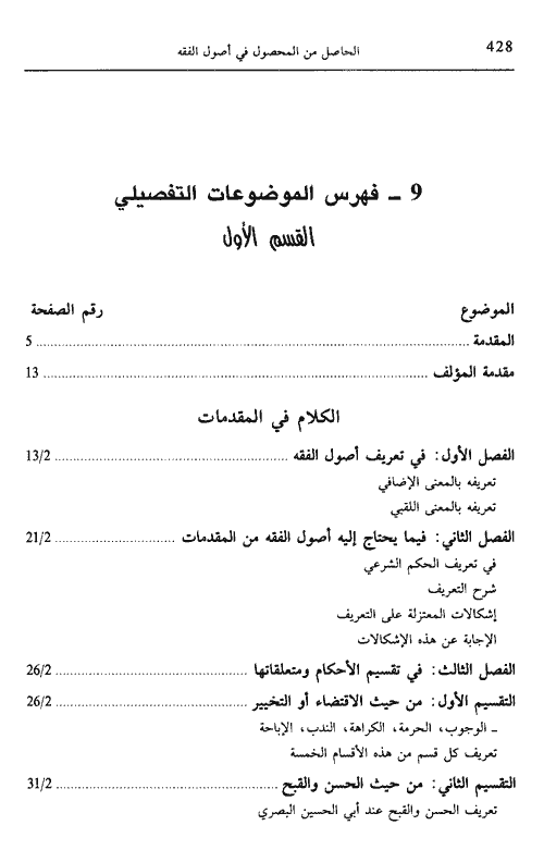 وأما القسم التحقيقي فقد كان عبارة عن تصحيح نص كتاب "الحاصل" وتحقيقه، وإبرازه في شكل منسق تنسيقاً يعين على فهم معانيه، ويمتع قارئه ويجدد أهدافه ومراميه، مع تخريج ما فيه من شواهد، وربطها بالكتب التي وردت فيها. ثم التعريف بمن ذكر فيه من الأعلام والطوائف والأماكن، وربط مسائله العلمية بالكتب الأصولية والفقهية، وشرح ما تضمنه من ألفاظ غريبة أو مشكلة، ووضع فهارس للمصادر والمراجع التي كان الاعتماد عليها في الدراسة والتحقيق، وفهارس تفصيلية للموضوعات الواردة في القسمين الدراسي والتحقيقي. إقرأ المزيد