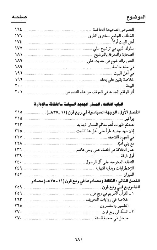 أما في الباب الخامس والأخير فقد توقف المؤلف عند معالم مرحلة جديدة، هي مرحلة انعطاف خطير في المسار التاريخي، إذ أن هذه المرحلة كانت خصبة بالخلافات والنزاعات التي كانت سبباً مباشراً في نشأة الفرق والمذاهب. أما الخاتمة فأفردها لاستعراض أهم النتائج التي توصل إليها في دراسته.. ثم ضمن الخاتمة فهرساً مفصلاً في مطالب الكتاب، وآخر في المراجع والمصادر المعتمدة في هذا الكتاب. إقرأ المزيد