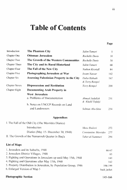 نبذة الناشر:This book presents a series of innovative academic studies that succeed in redefining the forgotten Palestinian element in western Jerusalem and its environs. The testimony presented here, which describes in detail the variegated Arab populations living in the area, and their fate during and after the 1985 war, systematically overturns ...the accepted view that distinguishes between "West Jerusalem" (Jewish) and "East Jerusalem" (Arab) as two monolithic and historicated historical perspective, which shows that the "seam" created in the Heart of Jerusalem by the 1949 cease-fire agreements is random, arbitrary and divorced from important elements in the city's urban development. إقرأ المزيد