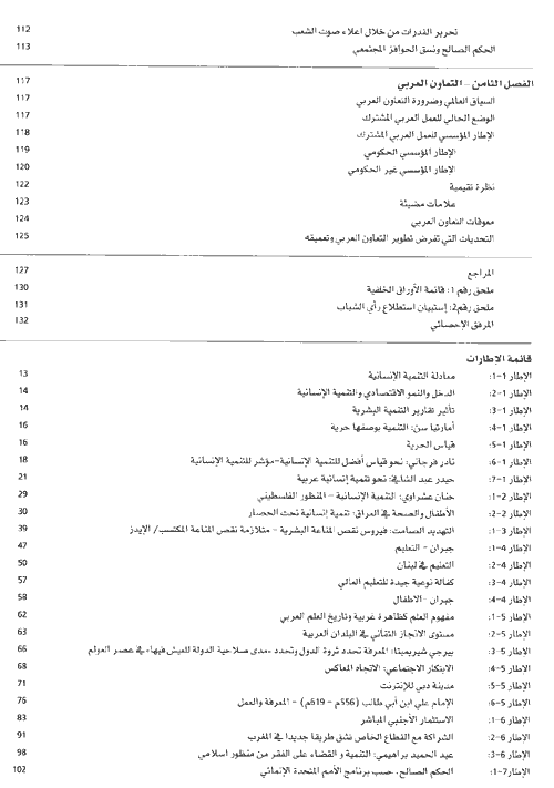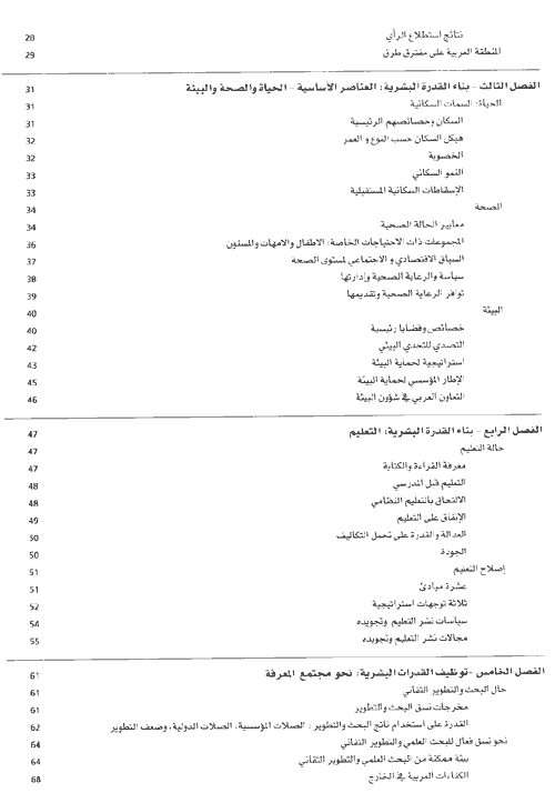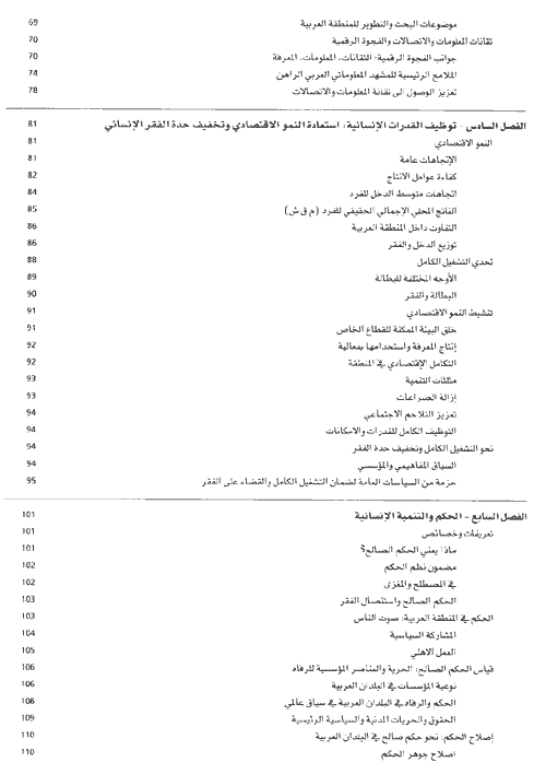 على وجه التحديد يخلص التقرير إلى ضرورة أن تتوافر البلدان العربية على إعادة تأسيس المجتمعات العربية على: