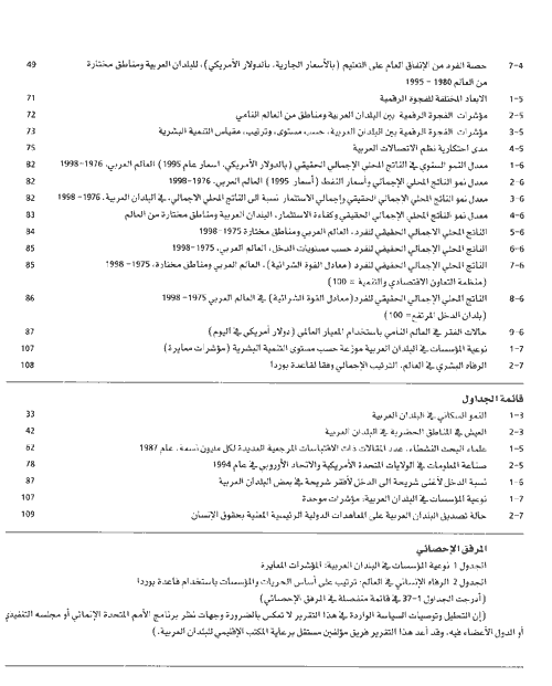 ويلاحظ التقرير أن التحسينات الكمية في مجال الصحة والتعليم لم تجد طريقها إلى جميع المواطنين بعد، وأن التوسع فى تقويم الخدمات لم يقابله تحسن نوعي في أساليب تقديمها، ويبرز التقرير أيضاً ما يتعين على الدول العربية أن تحققه لتتمكن من الانضمام كشريك كامل إلى مجتمع المعلومات العالمي والاقتصاد العالمي القائم على المعرفة، ولتتمكن من التصدي لآفة البطالة، بشقيها الإنساني والاقتصادي، التي تؤثر على البلدان العربية أكثر من تأثيرها على أية منطقة نامية أخرى.