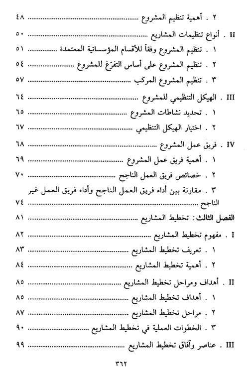 نبذة نيل وفرات:نظراً لندرة الكتب والمراجع التي تتناول إدارة المشاريع وجدواها من زاويتين متكاملتين هما الإدارة النوعية واقتصاد الإدارة، برزت الحاجة إلى وضع الكتاب الذي بين أيدي الباحثين ورجال الأعمال والمدراء العاملين والمسؤولين عن إنجاح مختلف المشاريع، كما بين أيدي طلاب الجامعات والمؤسسات التدريبية. وقد روعي عند إعداد هذا البحث العلمي، ...التركيز على ميزتين أساسيتين يمتاز بهما عالم المشاريع، هما إدارة المشاريع واقتصاد المشاريع. إذ ركّز الكتاب في أبوابه الثلاثة الأولى على دراسة المشاريع من منظار إداري، وناقش إدارة المشاريع بالاستناد إلى ركائز ثلاث: العلمية الإدارية الناجحة، إدارة موارد المشاريع البشرية وغير البشرية، استخدام أدوات إدارة كمية ونوعية في تنفيذ ورقابة المشاريع. أما الباب الرابع والأخير من الكتاب، فقد عالج الجدوى الاقتصادية للمشاريع، وناقش المراحل التي تتكون منها الجدوى الاقتصاد للمشاريع وأهمها: اختيار المشاريع ودراسة السوق والقيام بالتحليل الفني والتحليلي المالي للمشاريع.